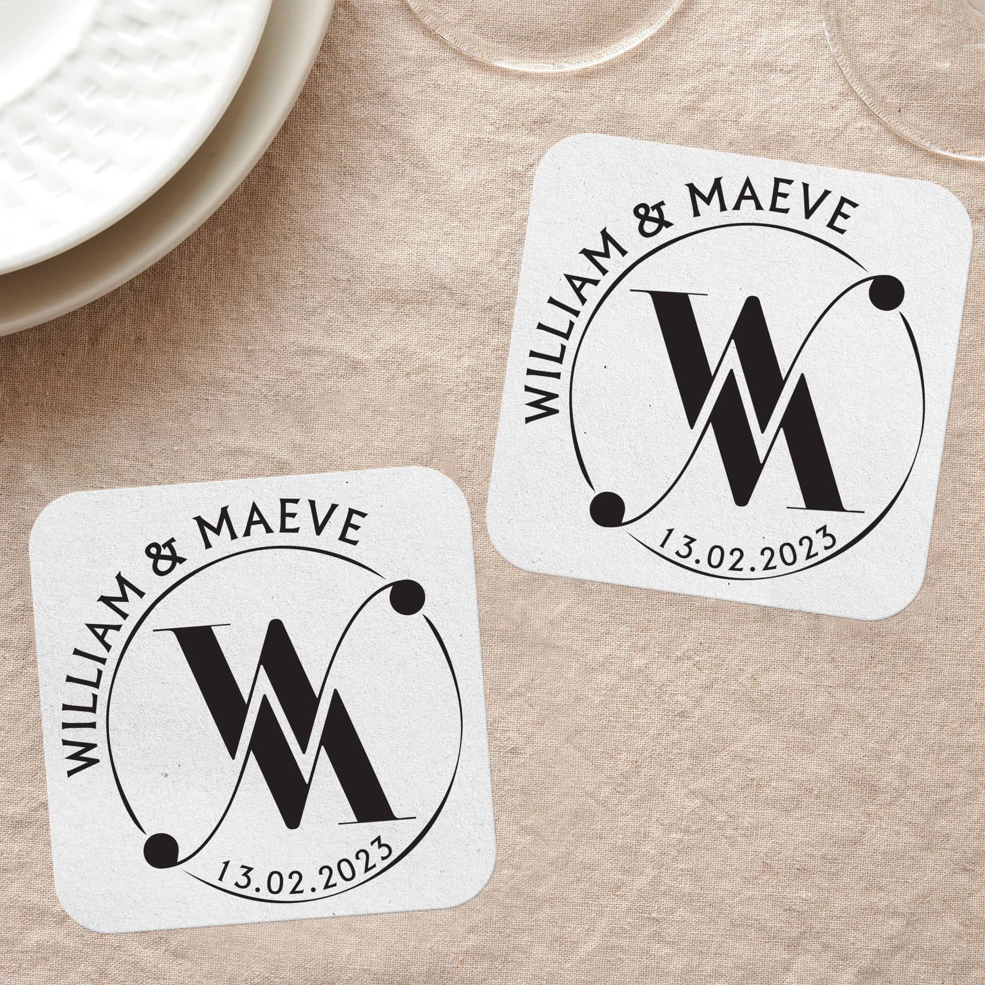 Experience a fusion of sophistication and individuality that transforms your wedding favors into a truly unique expression. These monogram coasters are crafted with meticulous detail. Our initials coasters are a popular choice as they are high-quality water absorbent and also aesthetically pleasing. Customize with your favorite fonts or create your initials to make them seamless. These monogram coasters can seamlessly integrate with the wedding theme and make it memorable.