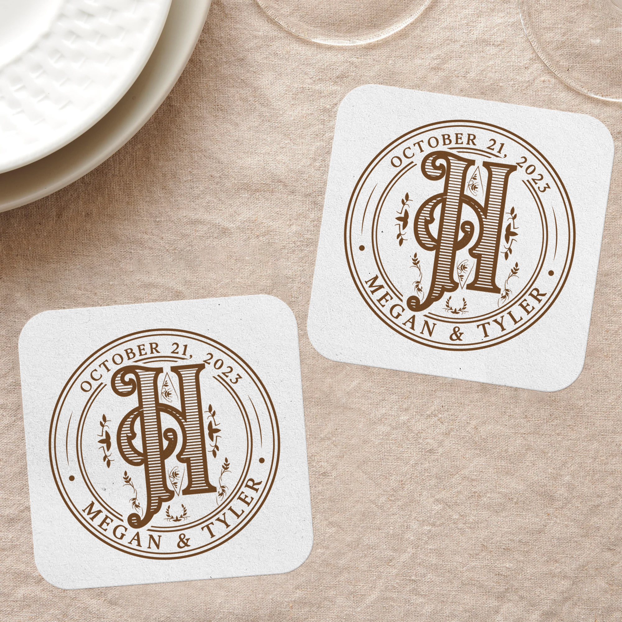 Personalized Monogram Coasters For Wedding Favors